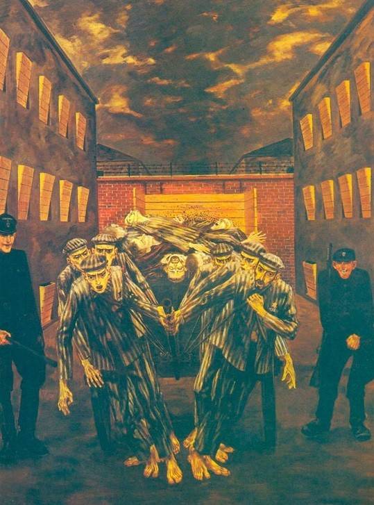 На выставке они представлены, поэтому зрителю не стоит рассчитывать на лёгкую прогулку по залам. Центральный образ – автопортрет самого автора – «Узник 32815». Он стоит на фоне ворот с коваными буквами Jedem das seine - «Каждому свое». Так гитлеровцы видели грядущее Европы – им предназначался Олимп, а большинству – рабство и унижения. И всё-таки измождённый, доведённый до крайности и лишённый имени, парень смотрит на нас гордо – его не сломили изощрённые пытки. Вот он – реальный сверхчеловек, не изменивший своей божественной сути.