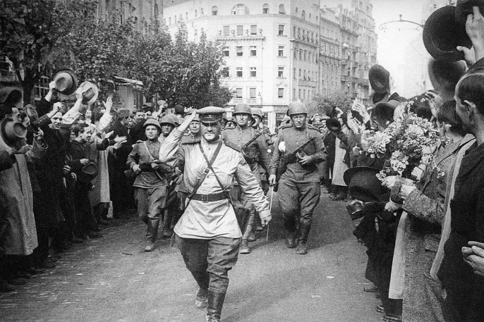 На фото: белградцы приветствуют вступление частей Красной Армии в Югославию, октябрь 1944 года