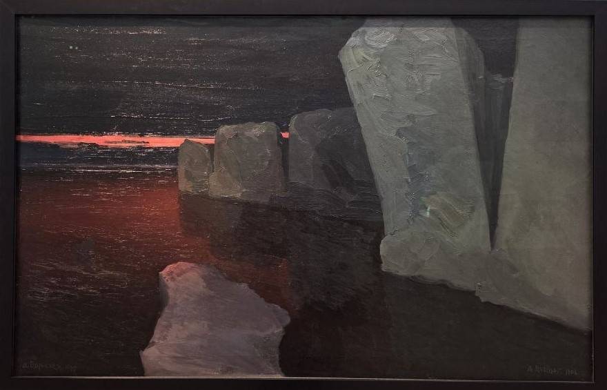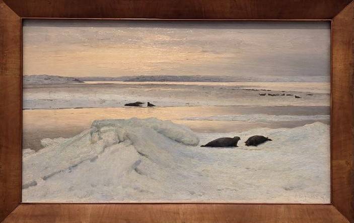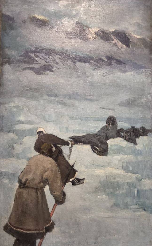 Приковывают к себе картины Александра Борисова – для него Арктика стала генеральной темой в искусстве. Ученик Ивана Шишкина и Архипа Куинджи, он совершил ряд продолжительных экспедиций на Новую Землю, в Печорский край и на остров Вайгач. Сейчас имя Александра Борисова подзабыто, но в своё время его льды, снега и камни производили фурор – Павел Третьяков купил у мастера более пятидесяти борисовских работ. Особо впечатляет «Закат» - тёмно-серые глыбы, покрытые мглой и – резкая полоса прощального солнца. Илья Репин с похвалой отзывался об опытах Борисова – дескать, они «…строго нарисованные и необыкновенно правдиво написанные… Берега, дали, лодки, самоеды в оленьих шкурах…— всё это дышит у него особенной красотой Ледовитого океана и производит впечатление живой правды».