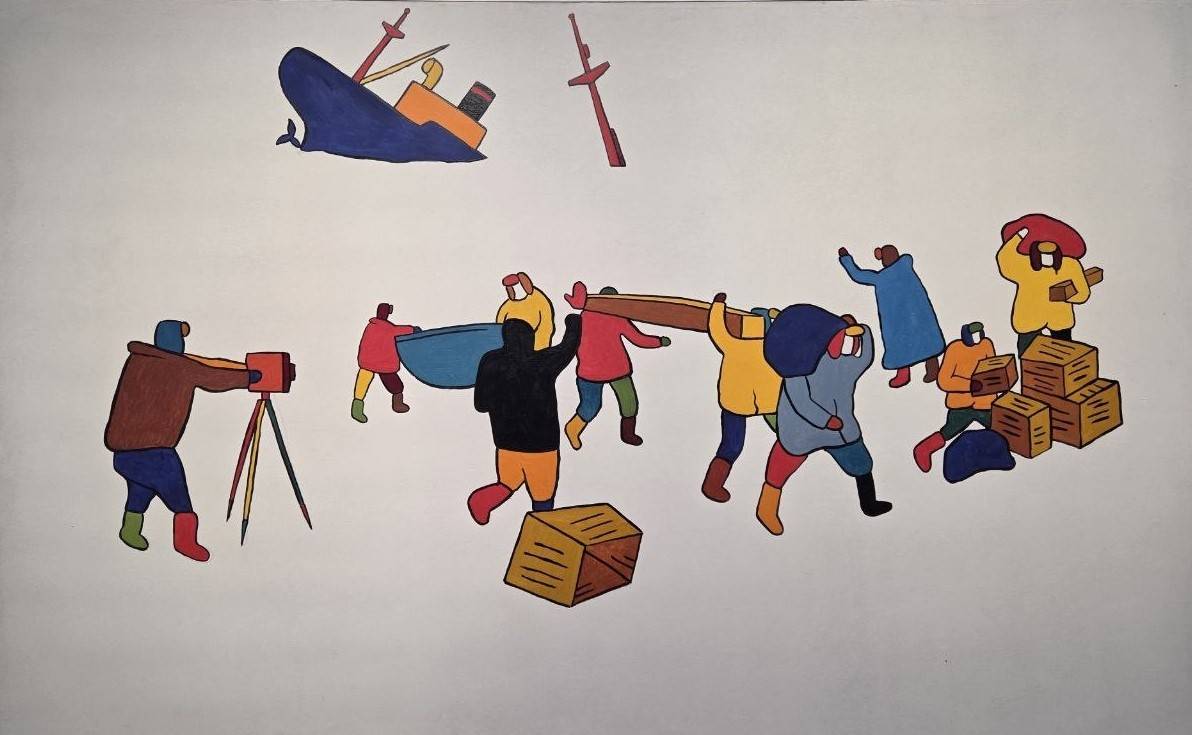 Итак, мы на выставке «Арктика. Полюс цвета», что проходит сейчас в Государственной Третьяковской Галерее. Собраны полотна, рисунки, скульптуры, инсталляции. На сопроводительных стендах – познавательная информация, иной раз, презабавная – допустим, отмечается, что белый медведь и пингвин могут встретиться лишь в зоопарке. Наверное, для кого-то сие – откровенье, ибо с географией у большинства ныне плоховато.
