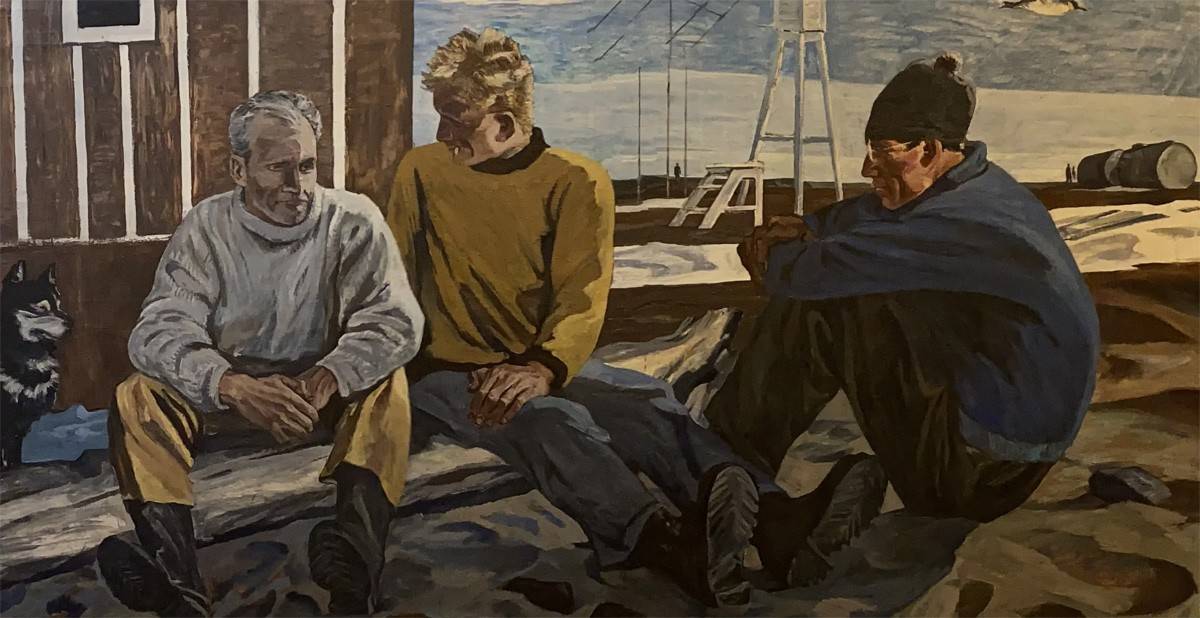 Арктические будни, как нельзя лучше, подходили «суровым» художникам. Братья Александр и Пётр Смолины пишут своих «Полярников» в кентовской манере – острые линии, контрастные тени, лапидарная палитра. Мужчины погружены в себя и существуют на полотне как бы отдельно друг от друга. Это – характерная черта «суровой» живописи. Каждый – носитель собственной вселенной.