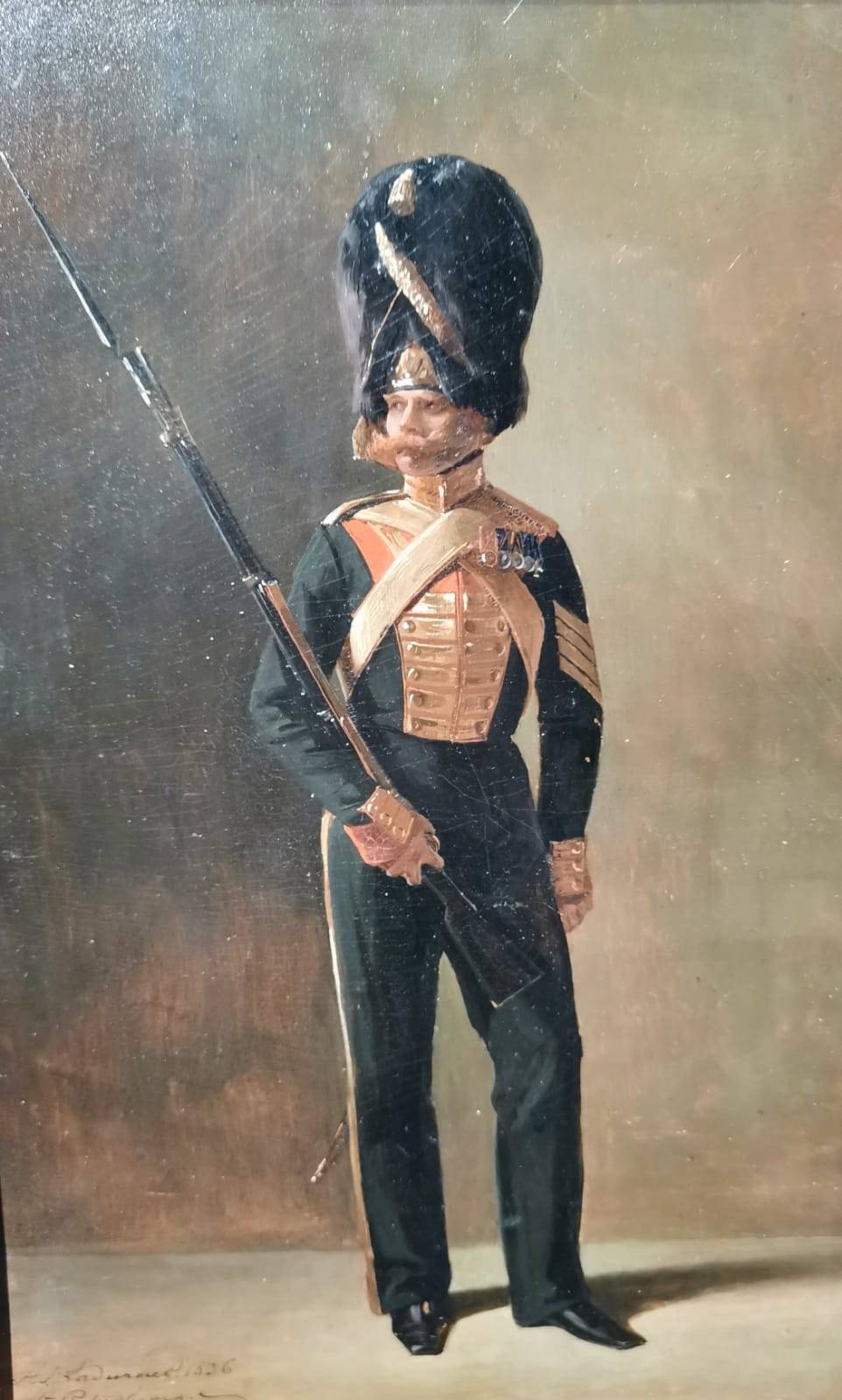Прекрасен раздел, повествующий о наиглавнейшем увлечении государя – об армии. Тут и портреты, и карты местностей, и образцы оружия. Чуть поодаль - замечательные рисунки Адольфа Ладюрнера, специализировавшегося на воинском бытописании. На одной из выставочных витрин – красный мундир Николая I. Бросается в глаза тонкость талии – государь был статен, величествен и обладал здоровыми привычками. Здесь же – мундирное платье его дочери Ольги – она значилась шефом одного из полков. В России шефством награждали не только мужчин, но и женщин царской фамилии – эту традицию переняли немцы для своих принцесс.