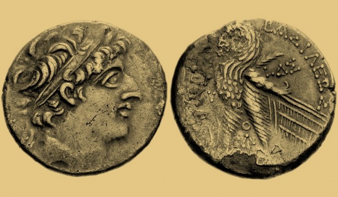 Антиох YIII Грип: явно избалованный правитель, курчав, волосы струятся, вдруг – вспышка идёт ассоциативная: они струятся, как могли бы змеи – на голове Медузы, но монеты не оживают; и явно божественное изображение реверса подразумевает нечто большее, чем просто плату.