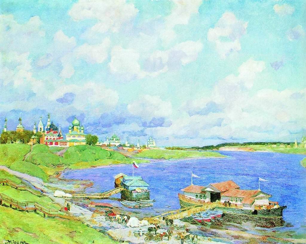 Во всех сюжетах — ощущение пространства и воли. Юон не любил тусклых красок — он живописал русский мир как насыщенно-яркий, будь то волжские берега или затерянный уголок Новгородской губернии. Однако наибольший интерес вызывала Троице-Сергиева лавра с её благолепным духом. Юон часто гостил в Сергиевом Посаде, каждый раз привозя очередное солнечное полотно. Практически все пейзажи Юона — панорамные, с людьми, животными, лодками, телегами. Всюду — колоритное бытие.