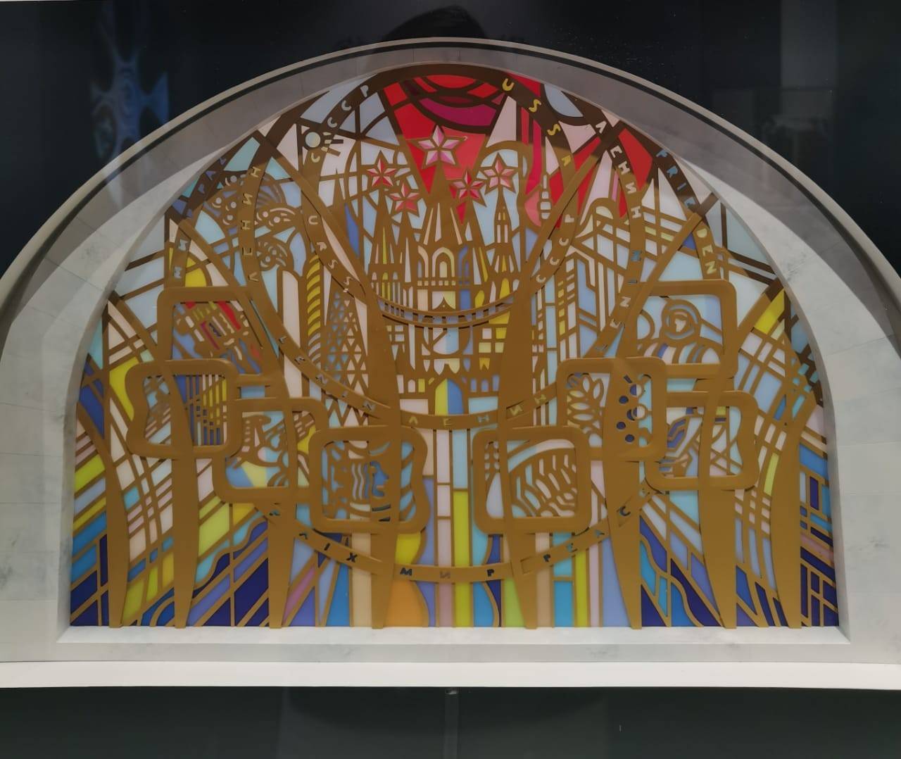 Станция метро «Новослободская» — это феерия витражей, выполненных по эскизам Павла Корина. В принципе, витражная традиция в России – это, прежде всего, украшения домов эры Модерна, когда любой купчина-владелец мечтал о многоцветье стёкол, где бы переплетались розы, ирисы и лианы. Витражи в метро – это было весьма смело, и Корину пришлось доказывать, что это не «устаревшая буржуйская прихоть», а интереснейшее решение.