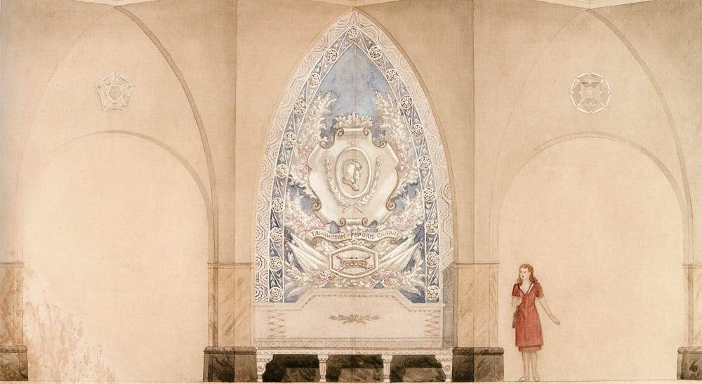 Символ выставки – так называемое небо-обманка на первых линиях московского метро. Обязательны - яблоневые сады и стройки, парашюты и дирижабли, бегуны и танцующие девушки на фоне синего неба с пышными облаками. Находясь внизу — созерцаем верх. Советский человек всегда видит небеса. Вертикаль пронизывает и уносится в необозримую высь. Нам нет преград! Подземелье оборачивается светлым чертогом. Александр Дейнека, участвуя в оформлении метрополитена, творил уникальные композиции для потолочных плафонов. Среди экспонатов – макеты потолочных плафонов для метро «Маяковская» и «Новокузнецкая». Сопроводительные таблички гласят, что была использована смальтовая и флорентийская мозаика. Тут же представлен макет перрона «Маяковской». Примечательный факт - братья Веснины, эти гуру зодчества, отмечали, что архитектор «Маяковской» Алексей Душкин слишком глубоко поместил мозаики в потолок. По сути, «утопил». Из-за этого просмотр значительно затруднён – все эти аэропланы и сады возможно созерцать лишь стоя прямо под изображениями. А кто же будет задирать голову в толчее, дабы увидеть мозаичное небо и белые чашечки парашютов?