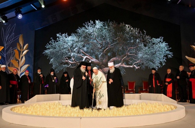 На фото: духовенство на экуменической и межрелигиозной встрече в Бейруте 1 декабря 2025 года (в центре слева направо): православный митрополит Бейрута Элиас (Илья) Ауди, патриарх маронитской церкви Бутрос Бешара аль-Раи, Папа Римский Лев XIV, духовный лидер друзов Ливана шейх Сами Аби аль-Муна