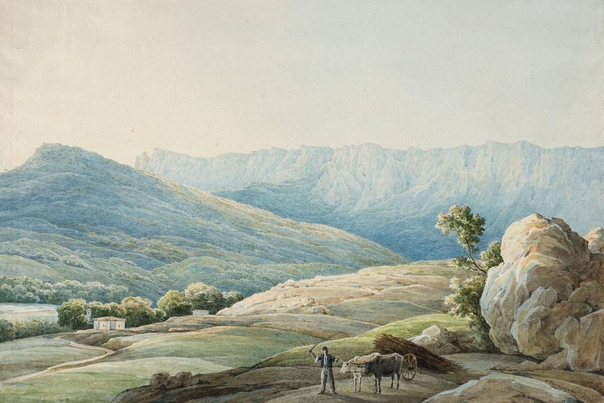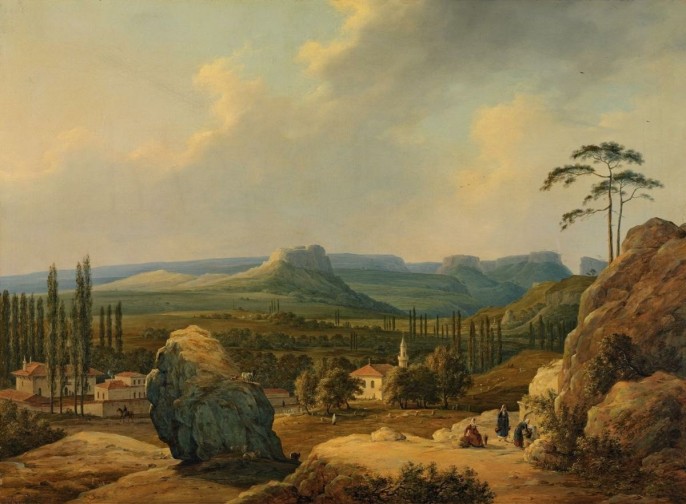 Никанор пребывал на вторых ролях – ему не давали пышных госзаказов, но, тем не менее, он ценился, как мастер. Среди экспонатов – замечательные виды Крыма, написанные младшим Чернецовым. Он вояжировал там по приглашению генерал-губернатора Новороссийского края графа Михаила Воронцова. Из поездки трудолюбивый художник привез более трёхсот акварелей и ряд картин маслом. Солнечные пространства, земля, напоённая ароматами, яркие цветы – всё это запечатлевалось Никанором. Великолепна картина «Ай-Петри» - феерия тончайших оттенков, от бледно-голубого до прозрачно-зелёного и жемчужно-серого. Утро в горах. Воздух – кристально-чист. На переднем плане – погонщик волов и телега. Случайный путник на фоне безбрежности. В тех же тонах написана и «Ялта» - белый городок, паруса и море. Всё пронизано романтикой ветра. «Вид Каралезской долины» - здесь уже сочные, земные краски – интенсивно-зелёный, коричневый, тёмно-жёлтый. В правом углу картины – татарские женщины в национальных одеяниях. Никанор охотно контактировал с местным населением, примечая нравы и обычаи.