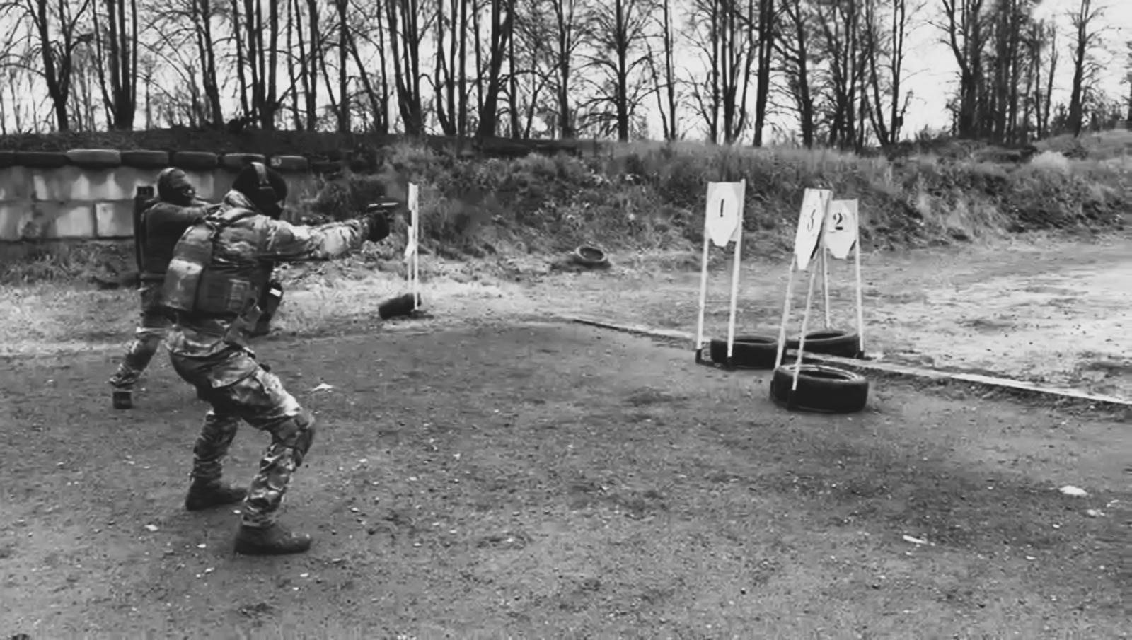 Ноябрь стоял голый и чёрный, без намёка на белизну, словно сама природа забыла о зиме. Воздух был влажен и тяжёл, пахло сырой глиной, порохом и прелыми листьями. Мишенные стойки, на которых инструктора развесили пронумерованные метрические мишени, выстроились по ранжиру слева направо. Земля под ногами, утоптанная тысячами ботинок, застыла комьями, жёсткая и безжизненная. Всё было выкрашено в тона застывшей грязи, чёрных луж и фрагментов заледенелой травы. Под ботинками скрипели гильзы от оружия разного калибра.