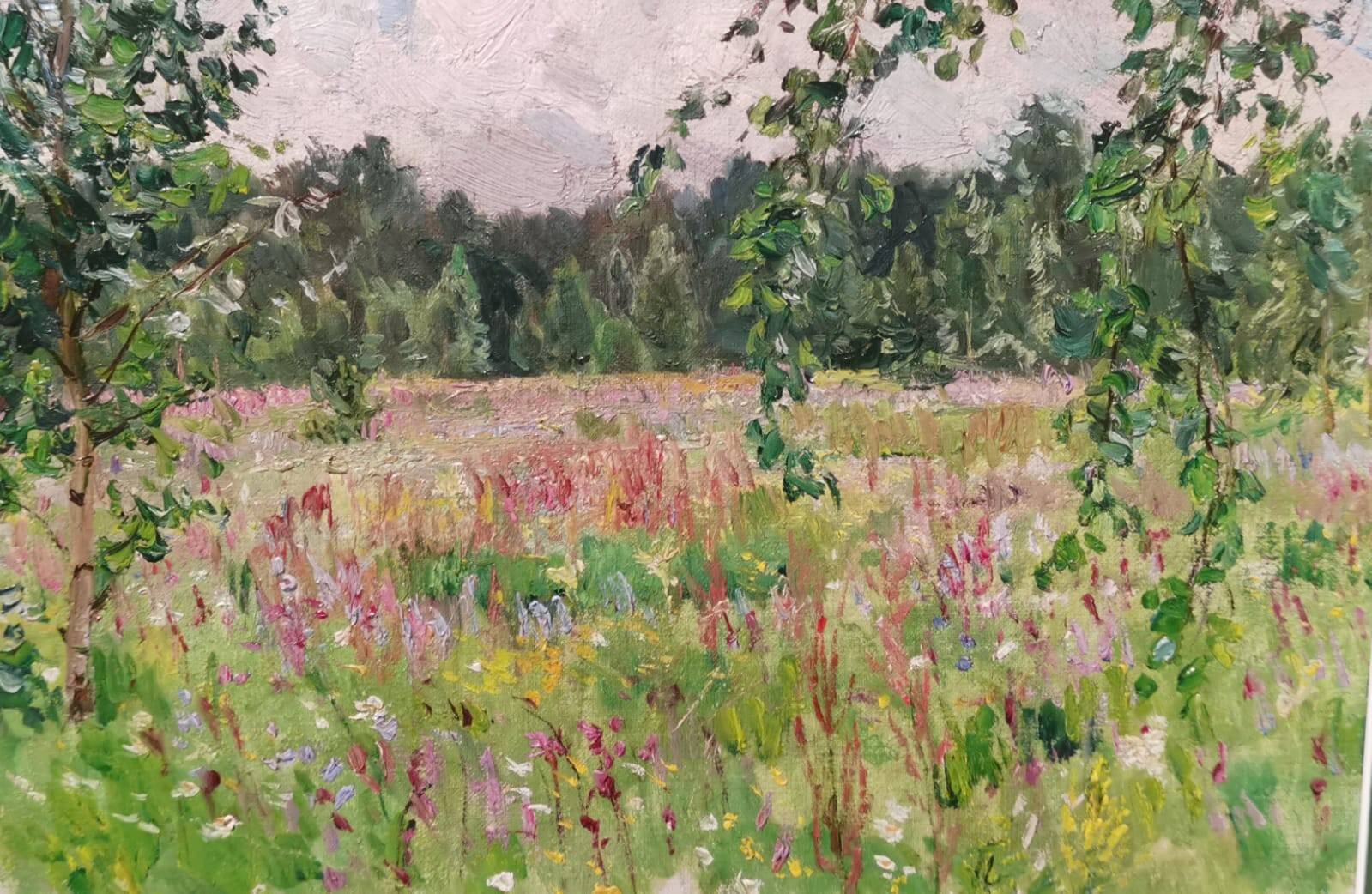 Целый раздел экспозиции посвящён Аркадию Пластову и его знаменитой вещи «Сенокос». Правда, самой картины здесь нет – есть этюды и наброски, прошествовавшие «Сенокосу». Пластов довольно долго выбирал натуру. Вроде бы ничего сложного – в Средней Полосе много живописных мест. Но нет. Требовалось интенсивное созвучие света и тени, земли и неба. На этом фоне - мирный труд во имя Родины и во имя жизни. Восхитительны этюды – «Цветы и травы», «Берёза», «Облака». Пластов был реалистом с импрессионистским вкусом – тут всё подчинено динамике и настроению. Прогретая солнцем земля отдаёт свой жар, воздух напоён духом полевых цветов, шелестят листья берёз. Остановись мгновенье, ты прекрасно! Однако же колхозники и не думают останавливаться – впереди мирные заботы о счастье. Тут же – «Рисующий у окна», портрет сына Николая, будущего художника и фотографа. Юноша склонился над альбомом, а перед ним – букет в скромной вазе. То, с чего начинает каждый юный художник.