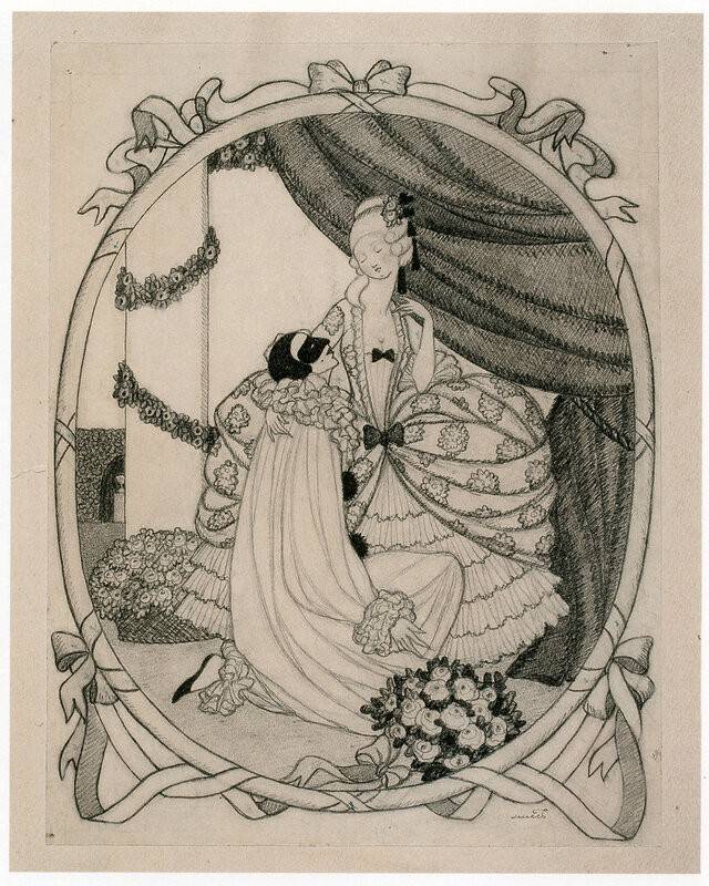 Основная часть картин, рисунков и статуэток – родом из Серебряного века. Той эпохе была свойственна карнавальность и страсть к мистификациям. Кроме того, в обществе царил культ дивного прошлого, которое становилось всё притягательнее. Чарующие сады, томные виконтессы и манерные принцы, фейерверки, беседки, рафинированность, блеск. «Кем воспета радость лета: / Роща, радуга, ракета, / На лужайке смех и крик? / В пестроте огней и света / Под мотивы менуэта / Стройный фавн главой поник», - изощрялся Михаил Кузмин.
