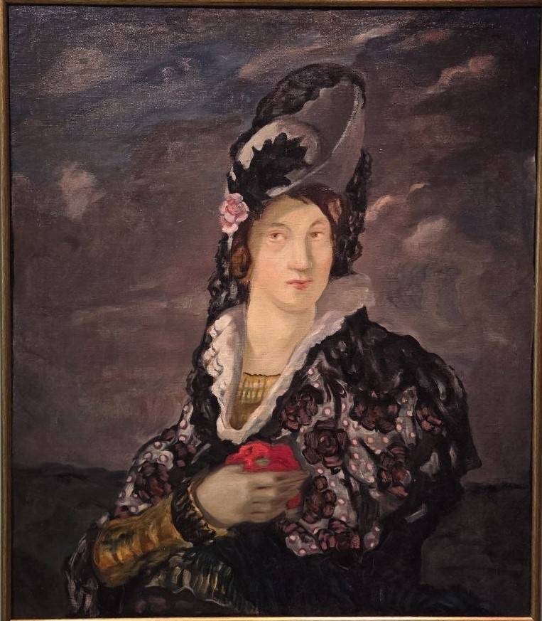 Картины, явленные в экспозиции, дают полноценное представление о нарядах, которые были востребованы женщинами – это цыганки, принцессы, коломбины, донны в мантильях и всё те же боярышни. Идеален портрет стройной и строгой мадам в костюме итальянской монахини – это Екатерина Васильева, вторая супруга Михаила Нестерова. Интенсивность белого и синего – такое сочетание рождает успокоенность, благорастворение, тишину.