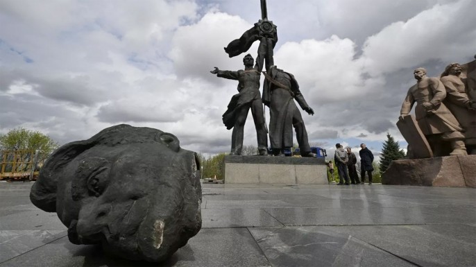 Об обелиске Славы и Родине-Матери над Днепром я уже не говорю. Сколько ей тризубов на щит ни прибивай, всё равно все знают за кого и против кого она меч подняла. Надо снести и здание Офиса президента Украины – это бывшее здание ЦК КПУ, и Кабмин – бывший советский Совмин, и Верховную Раду, и МИД – бывший горком КПУ. Все эти здания построены при советской власти и являются "колониальным наследием".