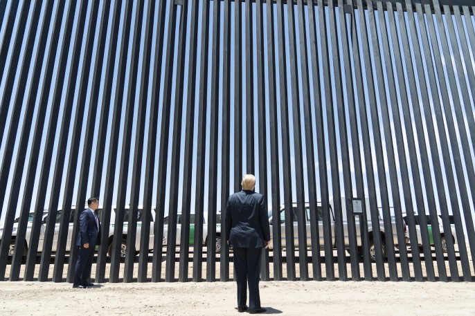 На самом деле политика America First выражалась в радикальном пересмотре международных соглашений (вплоть до перспектив выхода из НАТО), чтобы усилить конкретно США, а не политико-экономические блоки, куда входила страна. Для широких масс символом такой политики стала «Стена Трампа» — забор на границе с Мексикой, который должен остановить поток нелегальных мигрантов.