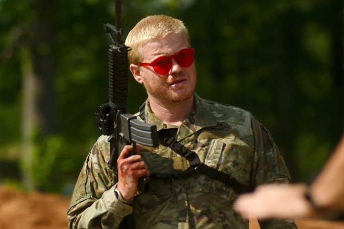 Самая запоминающаяся сцена оттуда — с Джесси Племонсом. Вспоминая цвета партий, его красные очки начинают играть совершенно новыми красками. Хотя это может быть и просто дизайнерское решение.