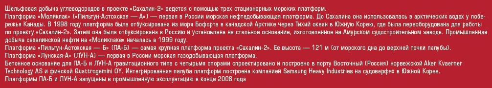 «Сахалин-2». В конце июня 2022 года президент РФ подписал Указ о переводе в российскую юрисдикцию компании — оператора проекта «Сахалин-2». Во-первых, в ответ на фактический саботаж и увод с проекта всего своего управленческого и технического персонала англо-голландской Royal Dutch Shell. Во-вторых, для устранения рисков операционной деятельности: компания — оператор проекта «Сахалин-2» Sakhalin Energy Investment Company Ltd. была зарегистрирована на Бермудских островах и заменена на российское ООО «Сахалинская энергия». Первоначально на долю Royal Dutch Shell (27,5%) претендовал «НоваТЭК», но в итоге в 2024 году она досталась внучатой структуре «Газпрома», компании «Сахалинский проект», за 94,8 млрд рублей. Таким образом, доля «Газпрома» в проекте «Сахалин-2» увеличилась до 77,5%. Это означает получение им акционерного «конституционного пакета» (более 75%), дающего право на принятие фактически единоличных решений по проекту. Срок действия СРП «Сахалин-2» — до 2041 года.