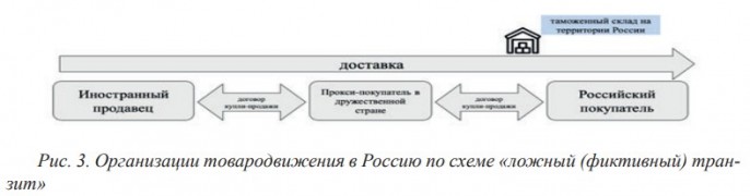 Товар следует транзитом через Россию, а в коммерческих и транспортных документах получателем указана компания из Узбекистана, Туркменистана или Таджикистана, а продавцом значится прокси-компания. На территории России прокси-продавец «меняет» своё первоначальное решение и номинирует российского покупателя (см. рисунок 3).