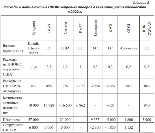 Биотехнологии в той или иной форме на сегодняшний день стали неотъемлемой частью современного сельскохозяйственного производства. Международные корпорации, такие как Monsanto (Bayer), Syngenta (Национальная химическая корпорация Китая – Sinochem), Corteva Agriscience (бывшая DowDuPont, наиболее известное подразделение – Pioneer Hi-Bred International), BASF, KWS и Limagrain (Vilmorin & Cie), играют ключевую роль в развитии этого сектора. Они инвестируют значительные ресурсы в исследования и разработки, а также внедряют инновационные технологии на глобальном уровне. Роль государства же в этой области носит скорее поддерживающий и регулирующий характер. С позиции научной классификации компании из приведенного списка принято считать транснациональными (ТНК). Они осуществляют свои научные разработки и бизнес-процессы на глобальном уровне, управляют активами в различных странах и стремятся минимизировать зависимость от какой-либо одной юрисдикции. В частности, данные компании:
