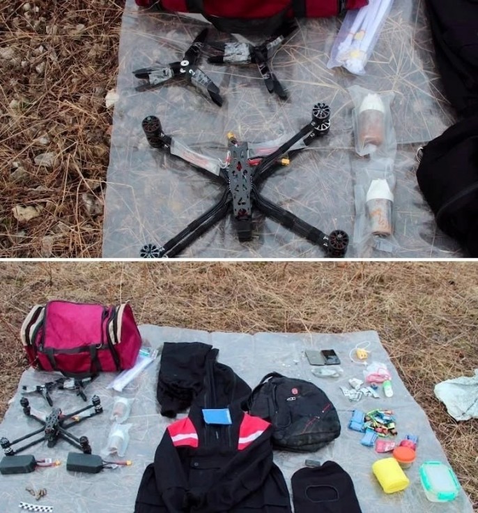 В ходе осмотра места происшествия изъято два беспилотных летательных аппарата с боевой частью, снаряжённой взрывчатым веществом иностранного производства, два пистолета Макарова, а также телефоны фигурантов, содержащие сведения, подтверждающие их преступную деятельность.