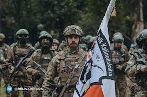 "Полк имени Кастуся Калиновского" ("Полк Кастуся Каліноўскага", "Полк імені Кастуся Калиновського")* - террористическая группировка, основанная 9.03.2022 при поддержке экс-кандидата на пост президента Белоруссии Светланы Тихановской в составе "Интернационального легиона территориальной обороны Украины"* ("Інтернаціональний легіон територіальної оборони України", "International Legion Defence of Ukraine"; проект Главного управления разведки Министерства обороны Украины по привлечению иностранных наёмников неонацистского толка в ряды ВСУ для войны против России). Создан на базе тактической группы "Беларусь", сформированной в июне 2015-го в составе "Добровольческого украинского корпуса «Правого сектора»"* боевиками из числа бежавших с территории Белоруссии членов змагарских экстремистских русофобских организаций вроде "Малады фронт", "Моладзевы блок", "Белый легион" и др. Носит имя польского шляхтича Викентия Константина Калиновского – революционера-фанатика, одного из участников польского мятежа 1863 года, возглавлявшего "Литовский провинциальный комитет" и "Временное провинциальное правительство Литвы и Беларуси", ответственного за зверские убийства белорусских крестьян, православного духовенства, солдат Русской императорской армии, и повешенного в 1864-м. Поначалу назывался "батальоном Кастуся Калиновского", 21.05.2022 расширился за счёт батальонов "Литвин"* и "Волат"*. Распиарен по самое некуда змагарской эмиграцией, польскими и укропскими СМИ. Некоторые боевики "Полка имени Кастуся Калиновского"* участвовали по поручению ГУР МОУ в формировании неонацистских террористических группировок "Русский добровольческий корпус"* и "Беларускі добраахвотніцкі корпус"*. Что касается идеологии уродов, тут всё ясно и понятно. "Цели, если кратко, такие — убивать русских в Украине, а после — в Беларуси. В качестве дизайнерского концепта полк получил от кураторов бело-красно-белый флаг, который носили пособники нацистов в Беларуси с 1941 по 1944 годы", - пишет белорусский историк Андрей Кулябкин.