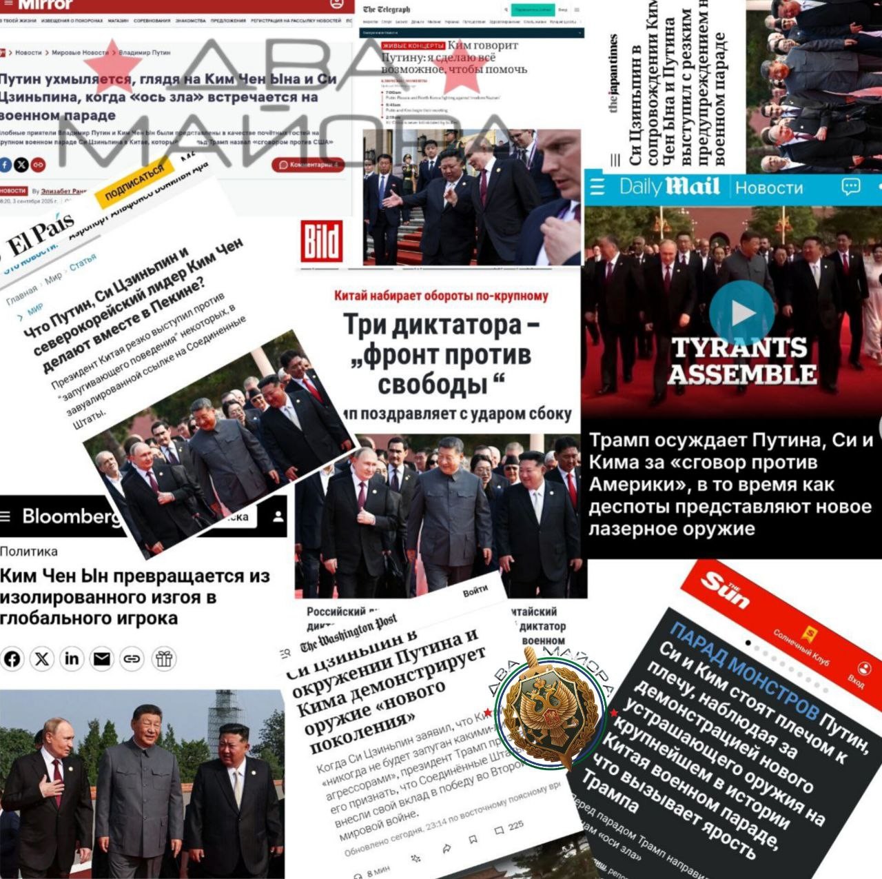 "По Пекину парадным строем провели новейшие стратегические ядерные межконтинентальные ракеты DF-5C, (радиус поражения — вся планета), комплексы ПВО, танки тип-100. Трамп в это время переписывал историю в соцсетях, рассказывая про «объём поддержки и «кровь», которую США «пролили» [?], чтобы помочь Китаю завоевать свободу», а также сказал, что лидеры России и Китая готовят против Америки «заговор»", - отмечает "Рыбарь". Военкор Александр Коц: "На параде в Пекине показали китайский сверзвук. Обладая дальностью действия до 4000 км и скоростью 4 Маха, DF-100 представляет серьёзную угрозу для вооружённых сил США и союзников в Индо-Тихоокеанском регионе, включая ключевые базы на Гуаме и Окинаве. DF-100 — это важнейший компонент стратегии Китая по предотвращению доступа в зону его стратегических интересов. <…> Звезда первой величины — беспилотный летающий самолёт-невидимка GJ-11 «Острый меч». Боевой радиус — 1600 километров. Максимальная дальность полёта — 4000 километров. Он может находиться в воздухе 6 часов. Потолок высоты — 12 тысяч метров. Под брюхом целый арсенал: четыре управляемые ракеты «воздух-воздух», четыре корректируемые 500-килограммовые авиабомбы с лазерной головкой самонаведения (или 12 крылатых планирующих бомб весом по 100 килограммов каждая). У «Острого меча» есть ещё одно очень важное качество — крайне низкий уровень радиолокационной заметности. Создатели этой машины утверждают, что сегодня в мире нет такой системы ПВО, которая могла бы вовремя засечь аппарат-невидимку GJ-11 и сбить его". Военный эксперт Владислав Шурыгин в беседе с "Ломовкой": "Состоявшийся парад является посланием американцам и их союзникам. И послание это не является угрозой в чистом виде, которую пытаются себе трактовать. Оно означает и читается как то, что эпоха доминирования и диктата силового Запада закончена. Китай возвращается как мировая держава, независимая и имеющая свои национальные интересы. В конце 70-х КНР ушёл от этой роли, сосредоточившись на экономическом росте. И стратегия Дэна Сяопина — дружба с Соединёнными Штатами и Западом для того, чтобы получить от них мощный толчок к развитию — сработала. Но сегодня Пекин больше не собирается мириться со вторичными ролями. Парадом Китай показывает, что он — великая держава, что у него есть всё, чтобы защитить не только себя, как государство, но и ту роль, которую он берёт на себя в мире: создание новой системы безопасности и управления".