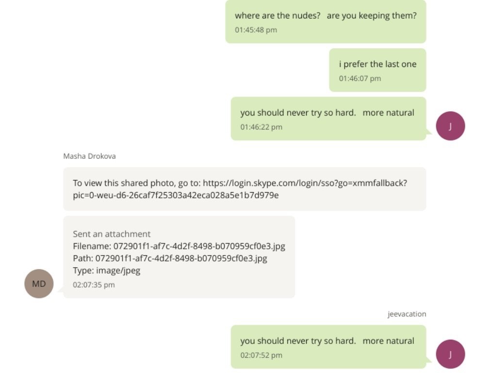 В обнародованных документах по делу Джеффри Эпштейна Мария Дрокова упоминается 1639 раз! Средства массовой информации утверждают, что Маша в определённый период "занималась продвижением финансиста в медиа, координировала его контакты с прессой, составляла ответы для СМИ и подбирала журналистов для материалов о нём". Несмотря на то, что ранее агент "Моссада" Эпштейн уже был осуждён за принуждение несовершеннолетней к проституции и ещё с 2008-го являлся зарегистрированным секс-преступником третьего уровня (высокий риск повторного преступления), Дрокова представлялась PR-специалистом этого монстра.