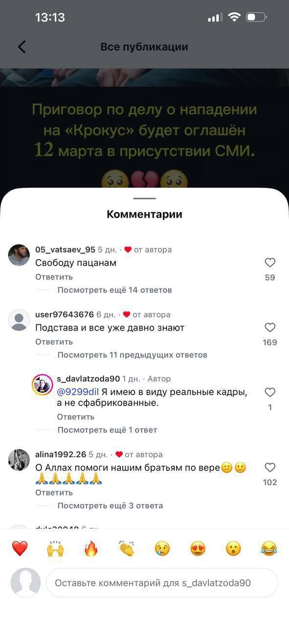 "Кудрат Курбонов, испытывая политическую и идеологическую ненависть и вражду к действующей российской власти, являясь сторонником идей радикального ислама, сформировал умысел, направленный на оправдание терроризма, то есть публичные заявления о признании идеологии и практики терроризма правильными и заслуживающими поддержки и подражания, направленные на формирование у неограниченного круга лиц идеологии терроризма, убеждённости в её привлекательности, представления о допустимости осуществления террористической деятельности. Так, Курбонов с 24.03.2024 по 25.03.2024, используя свой мобильный телефон, Интернет, а также профиль в мессенджере опубликовал ряд комментариев, направленных на оправдание совершённого террористического акта 22.03.2024 в «Крокус Сити Холл», имеющих совокупность лингвистических и психологических признаков оправдания терроризма", - информировала тогда объединённая пресс-служба судов Санкт-Петербурга.